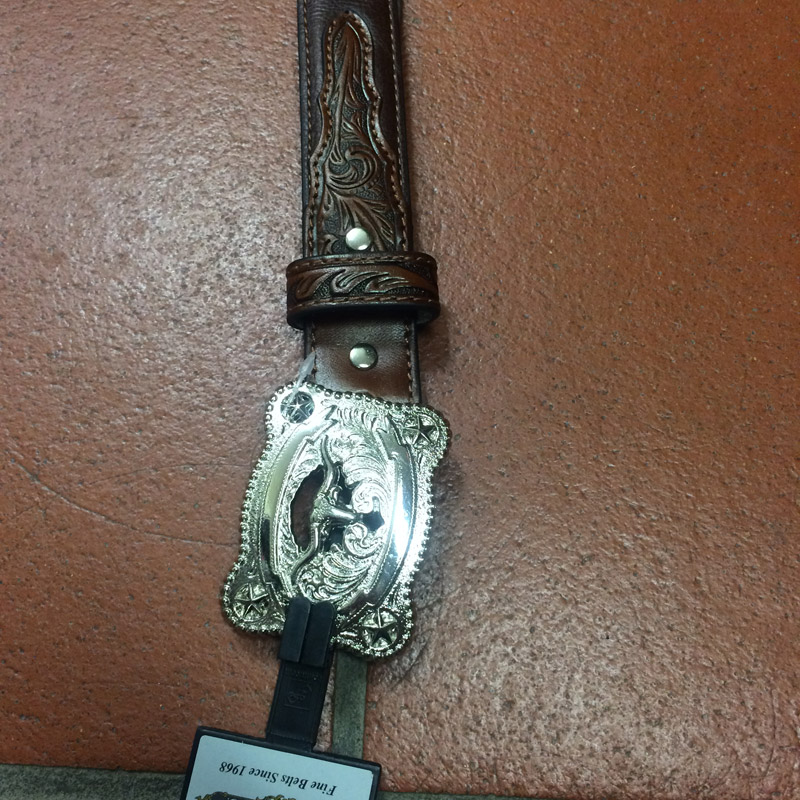 cintura cuoio con ricami, fibbia rettangolare con Big Horns